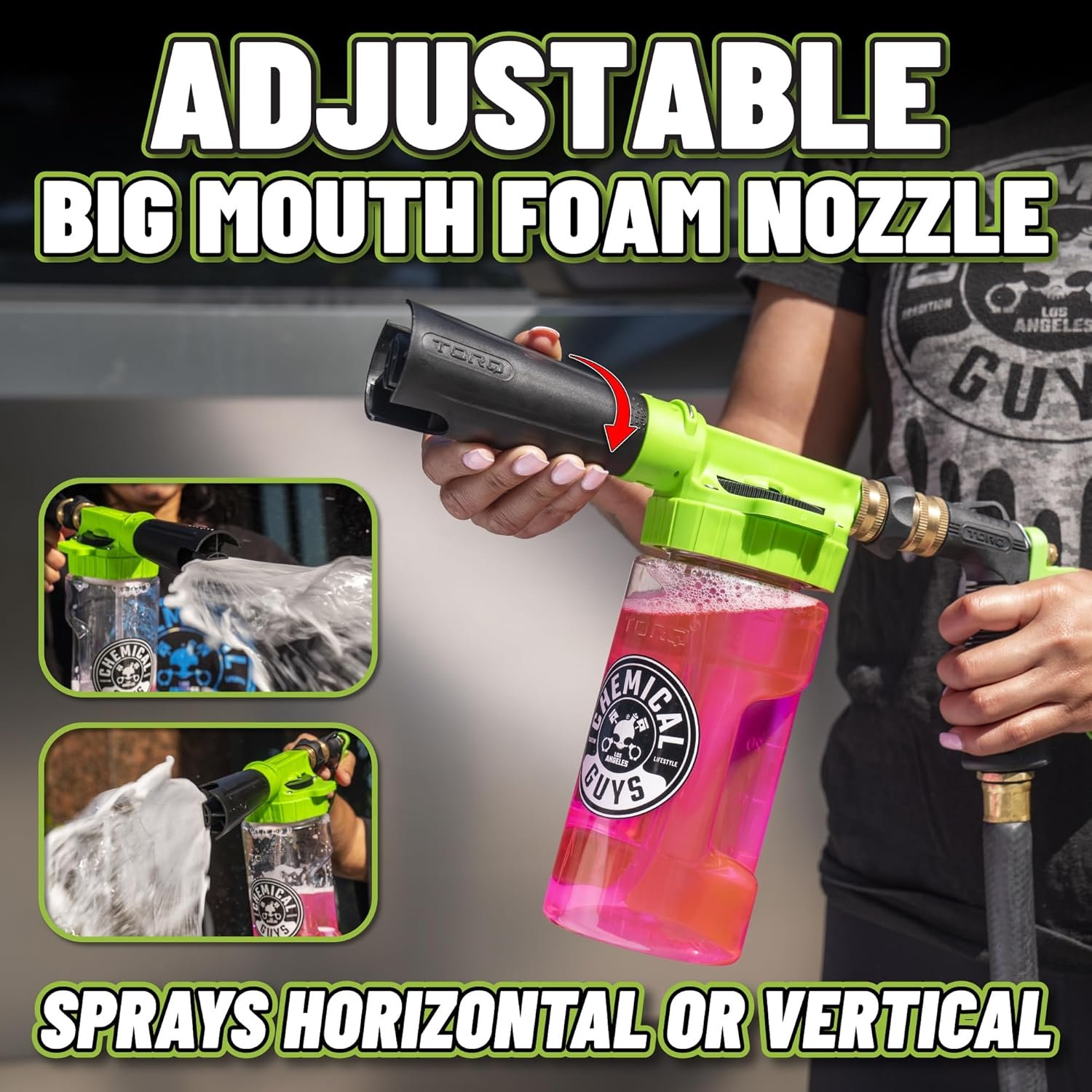The foam cannon is a game-changer for vehicle washing, delivering thick suds instantly for a safe and effective car wash. This model, the Chemical Guys TORQ Foam Blaster 6, attaches conveniently to any standard garden hose, eliminating the need for a pressure washer. With its easy-to-use design and adjustable foam settings, it ensures scratch free wash results every time.