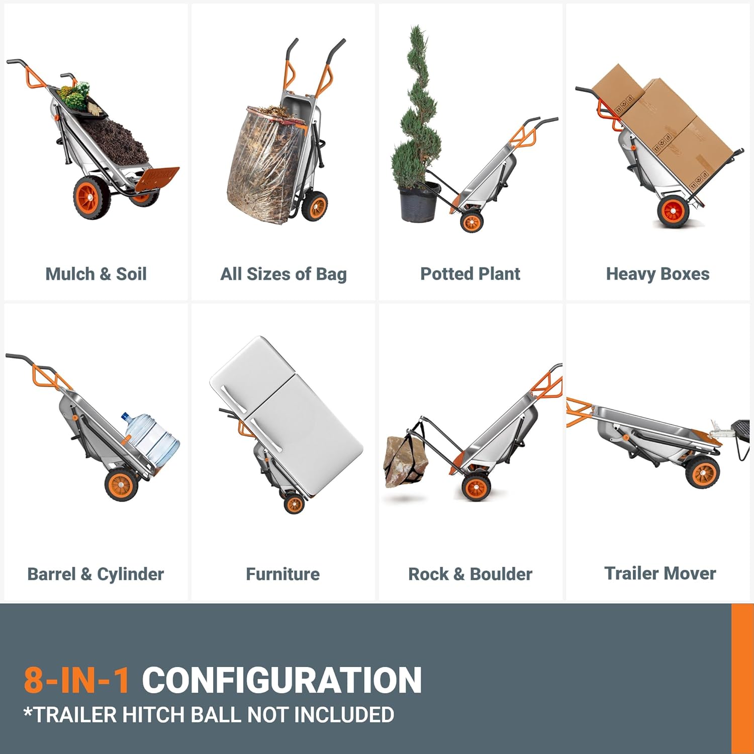 - 8-in-1 Versatility: Easily adapts to several jobs with accessory add-ons: use it as a hand truck, yard cart, dolly, plant mover, or cylinder carrier for multi tasking in the garden.