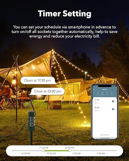 The HBN Outdoor Waterproof WiFi Smart Plug is a powerful and reliable solution for automating your outdoor electrical devices. Designed with six grounded outlets and built to withstand all weather conditions, it’s ideal for controlling garden lights, fountains, patio decorations, or holiday displays. This smart yard stake works seamlessly with Alexa and Google Assistant, allowing hands-free voice control and easy scheduling through the HBN Smart or Smart Life app. You can set timers, countdowns, and custom schedules to save energy and simplify your outdoor routines. Its durable, weatherproof construction ensures safety and long-lasting performance, while the built-in overload protection provides added peace of mind. Perfect for homeowners who want to enhance their outdoor space with convenience and modern smart home technology.
