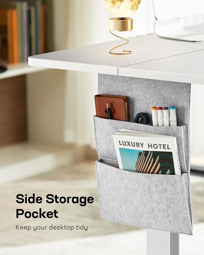 The Marsail 55×28 Electric Standing Desk offers one-touch height adjustability (27.5″–46.7″) with memory presets, making it ideal for sit-to-stand workflows. Its sleek 55″×28″ laminated surface, built-in storage pocket, and whisper-quiet motor (<50 dB) deliver both functionality and ergonomics.