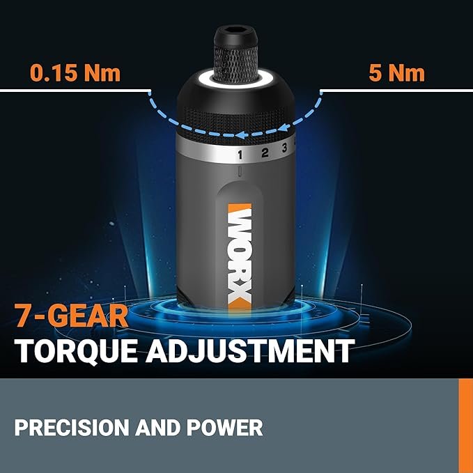 The WORX 4V Cordless Screwdriver (WX242L) combines power, precision, and portability for everyday DIY projects. Featuring seven torque settings, a magnetic quick-release chuck, and a built-in LED light, it delivers accuracy and comfort for home repairs and furniture assembly. Its 30-piece accessory kit makes it ready for any task straight out of the box.