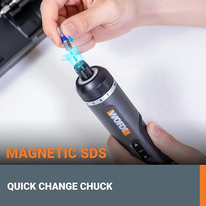 The WORX 4V Lithium Screwdriver with 30-Piece Accessory Kit is a versatile tool designed for precision and convenience. With seven torque settings, a magnetic quick-release chuck, and built-in LED illumination, it offers excellent control for furniture assembly, electronics repairs, and everyday DIY tasks. Compact and lightweight, it’s your go-to screwdriver for tight spaces and regular home projects.